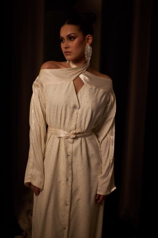 Beige Silk Choker Kaftan